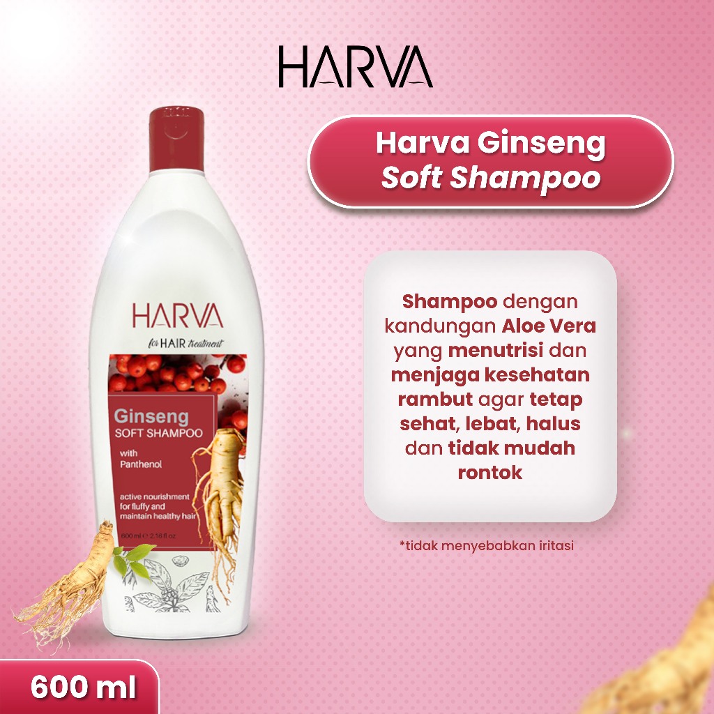 HARVA Shampoo Ginseng Soft & Smooth 600ML | Perawatan Shampo Atasi Rontok Menghaluskan Rambut