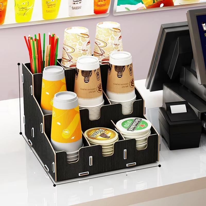 4/8/9 Slot Rak Paper Cup Kayu Cup Holder Organizer Tempat Gelas Kopi / Rak Dispenser Minuman / Rak Gelas Kertas Untuk Ca