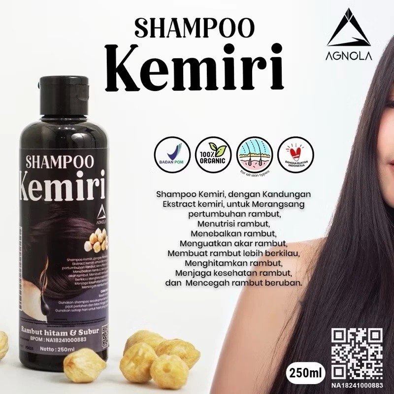 AGNOLA Shampoo Kemiri Hitam 250 ML Penumbuh Rambut Cepat Penghilang Uban dan Rontok BPOM