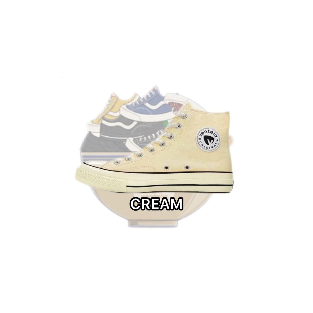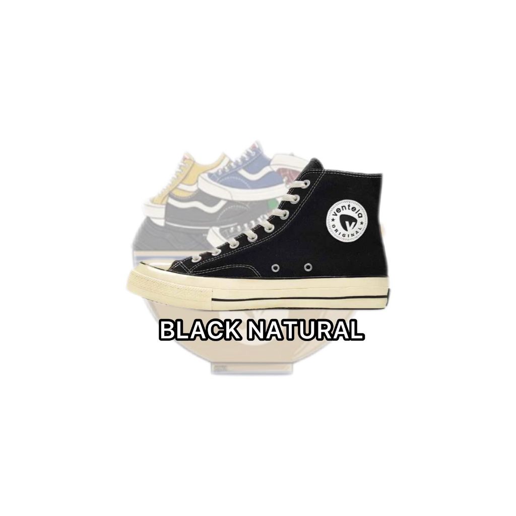 Ventela Back To 70's High Black Natural/Cream Shoes Free Sticker Casual Pria Sneakers / Free Stiker & Free Kaos Kaki