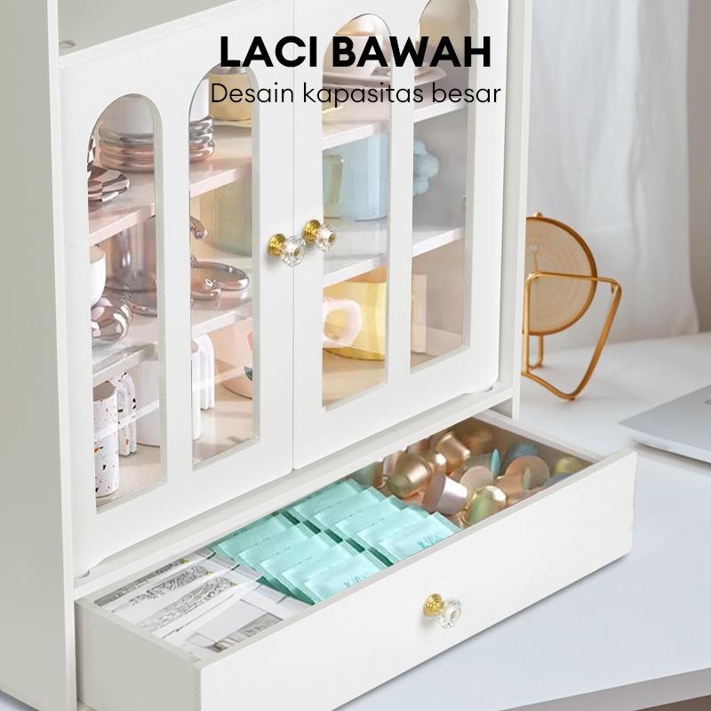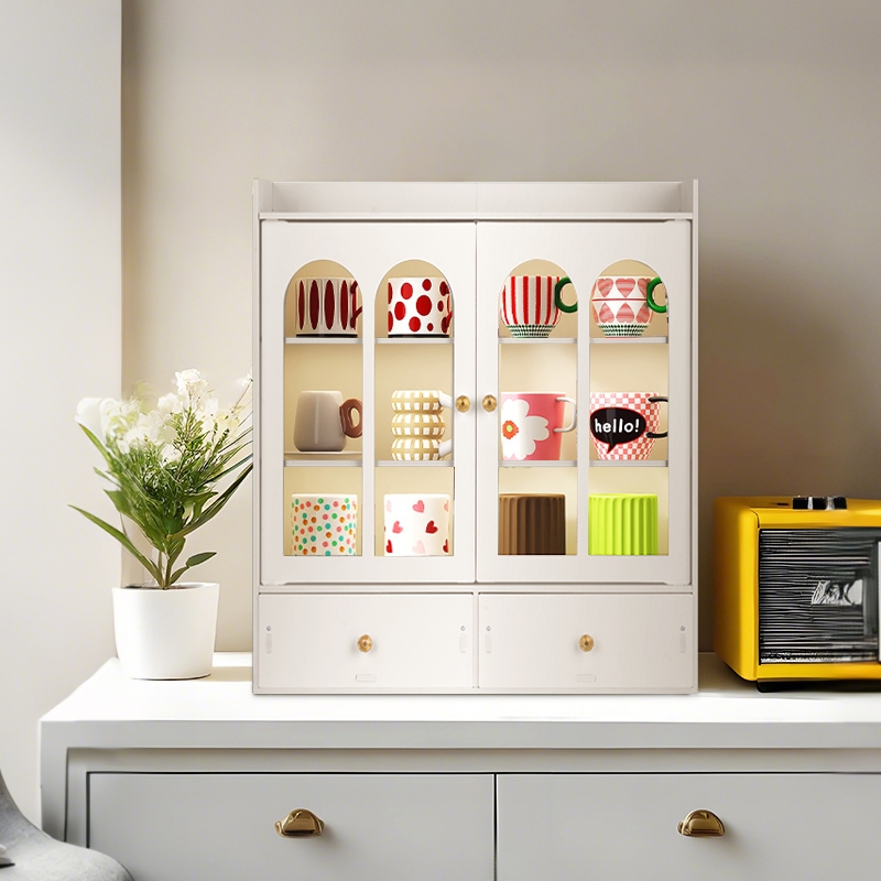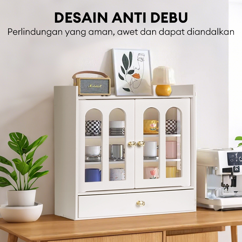Lemari Penyimpanan Cangkir Kopi Anti Debu Pintu Ganda Dengan Laci Cocok Untuk Samping Tempat Tidur/Kamar Tidur/R Belajar