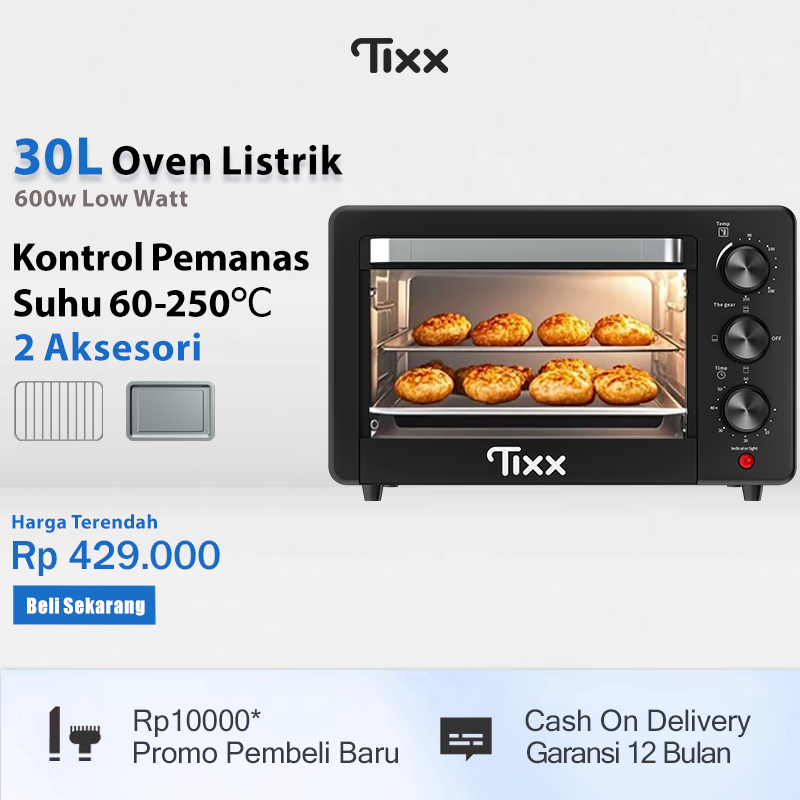 TIXX Oven Listrik 30L Serbaa 250° API ATAS BAWAH 600W Oven Tangkring Pemanggang Roti