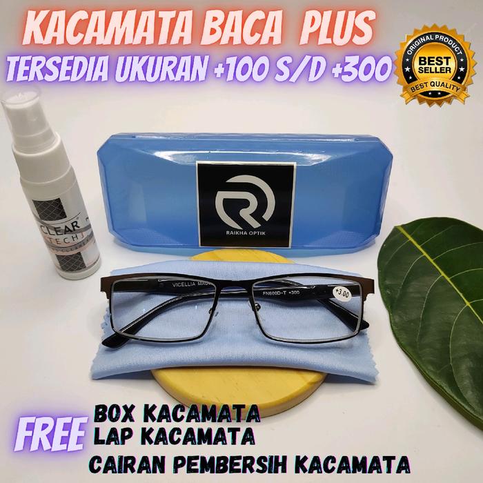 Kacamata Baca Plus Untuk Pria Dan Wanita Free Box Lap Dan Cairan Pembersih Lensa - Hitam, +1.00