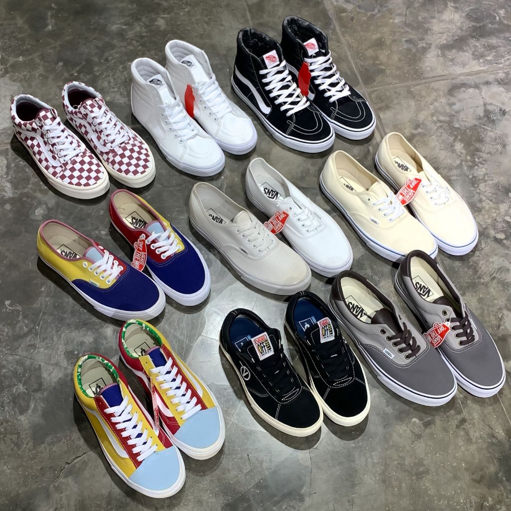 SK8-HI TRUE WHITE, SK8-HI BLACK/WHITE, AUTHENTIC TRUE WHITE, AUTHENTIC WHITE, PARADOXX BLACK, ERA 59 (2-TONE), AUTHENTIC SUNSHINE, STYLE 36 SUNSHINE, OLD SKOOL CHECK