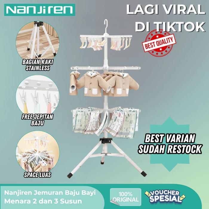 Nanjiren Jemuran Baju Bayi Lipat Menara Rak Gantungan Pakaian Bayi Anak Kaus Kaki Jemuran Baju Bayi Kokoh Anti Karat Lip