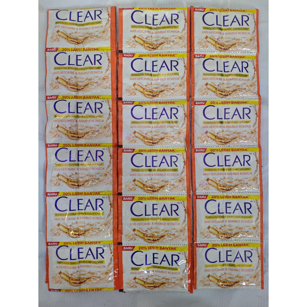 Shampo clear renceng Anti Ketombe Gingseng &Rambut Rontok Sachet 12 x 9 ML / Clear