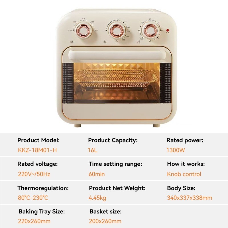 ⭐Hadiah Gratis⭐16L Retro Oven&Air Fryer Mini Oven Air Fryer 5 in1 1300W Pemanggang Kue dan Makanan Menghemat Listrik Mul