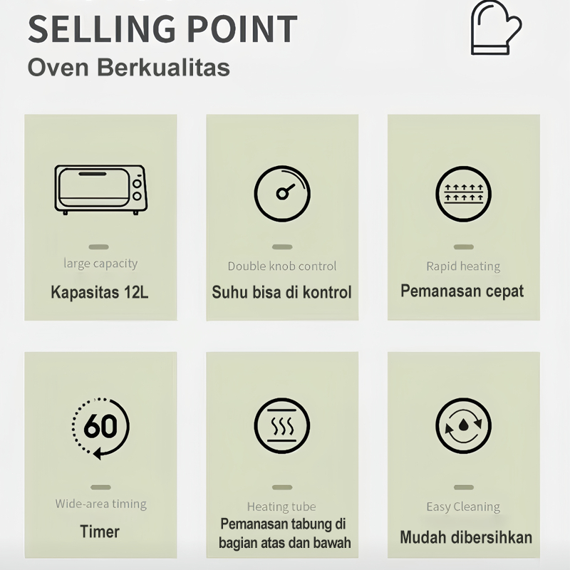 TIXX 15L Oven Listrik Low Watt 600W Tertinggi 250° Multifungsi 3 Knob Contro Dengan Timer
