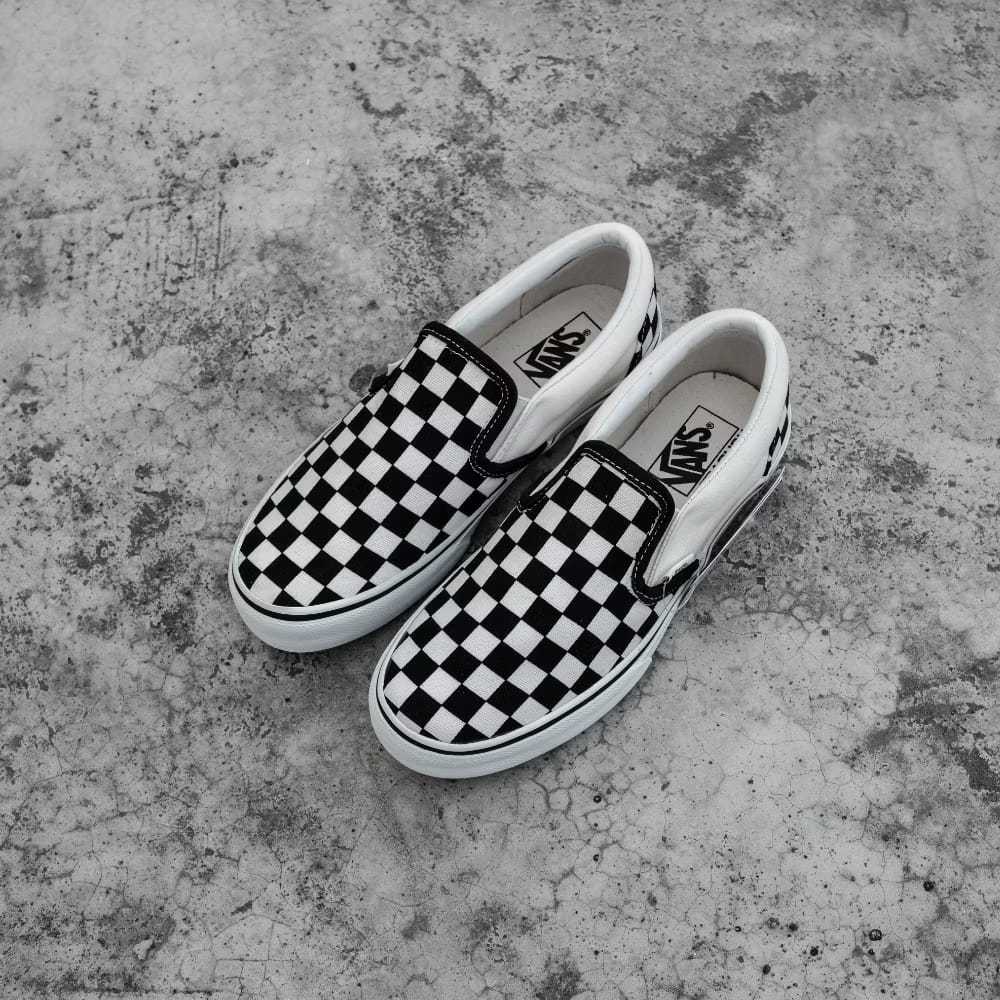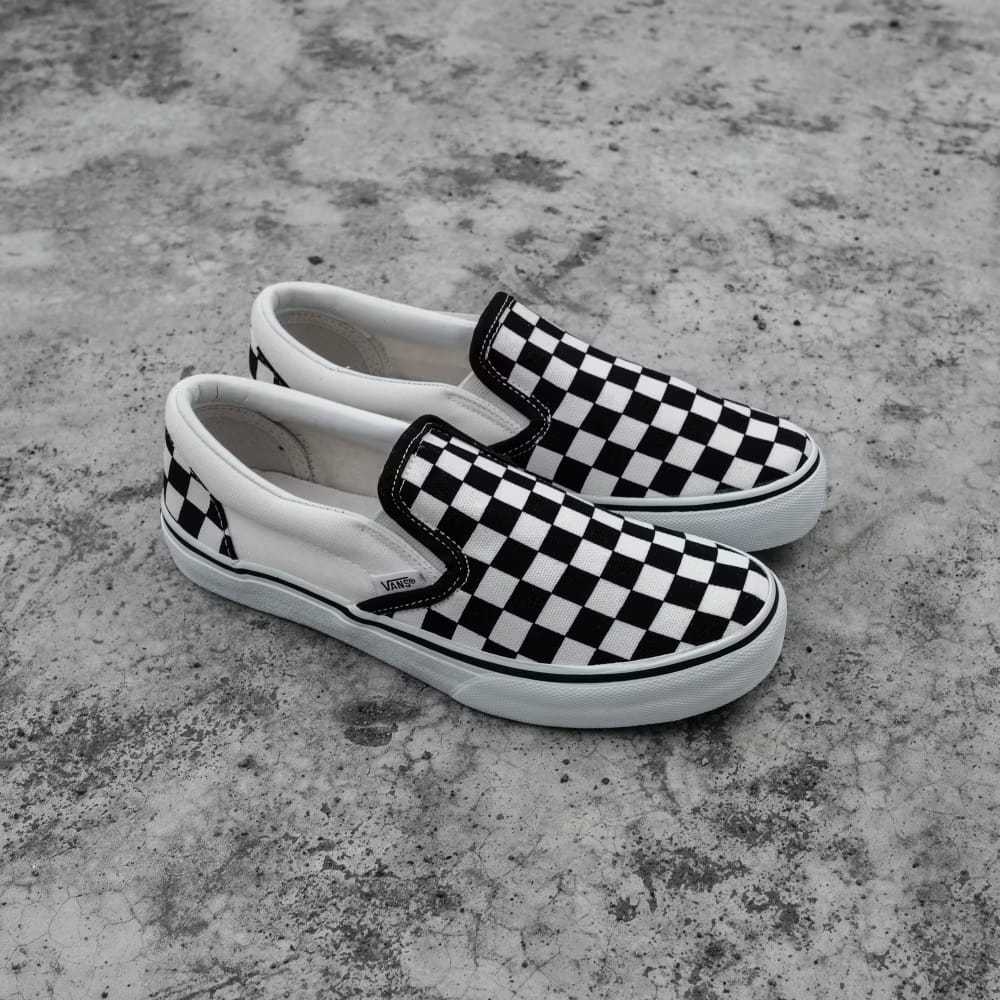 V4ns Slip-On Classic catur Black WhitePria dan wanita