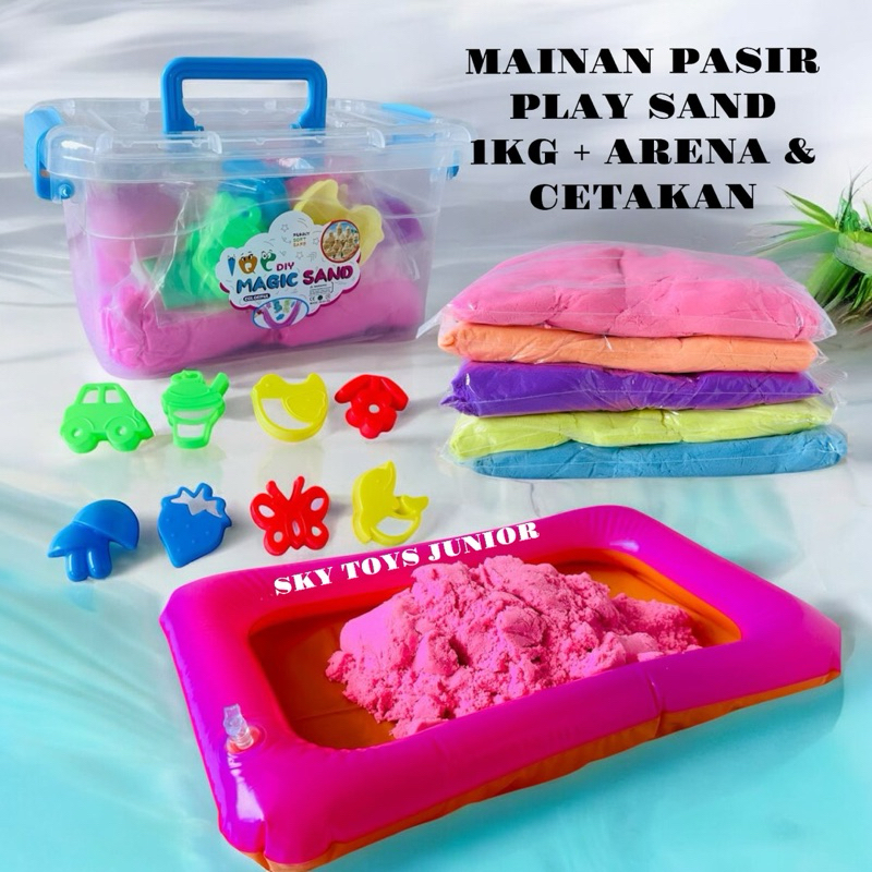 Mainan pasir anak 1kg + arena bermain & cetakan PACKING DUS TEBAL Mainan Pasir Ajaib/Magic Sand 1kg & Mainan pasir anak