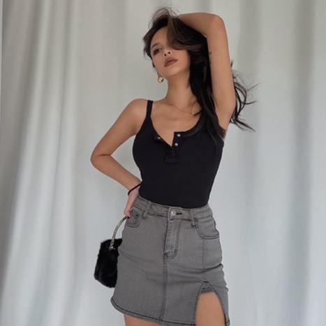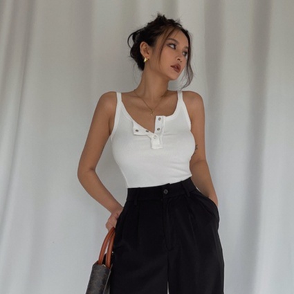 Sexy Button Up Straps Ribbed Tank Top 7282 S/M/L