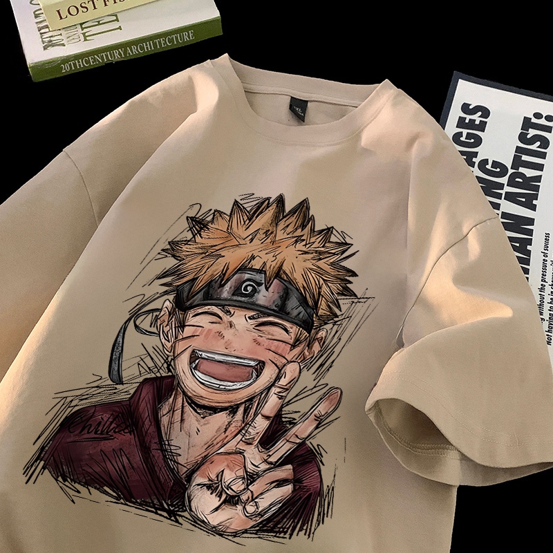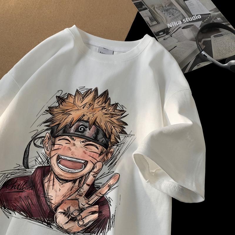 Disneay Kaos Pria T-Shirt | Kartun Anime Naruto | Amerika Vintage Lengan Pendek Kaos Pria Keren | Kaos Washed Pria Baju