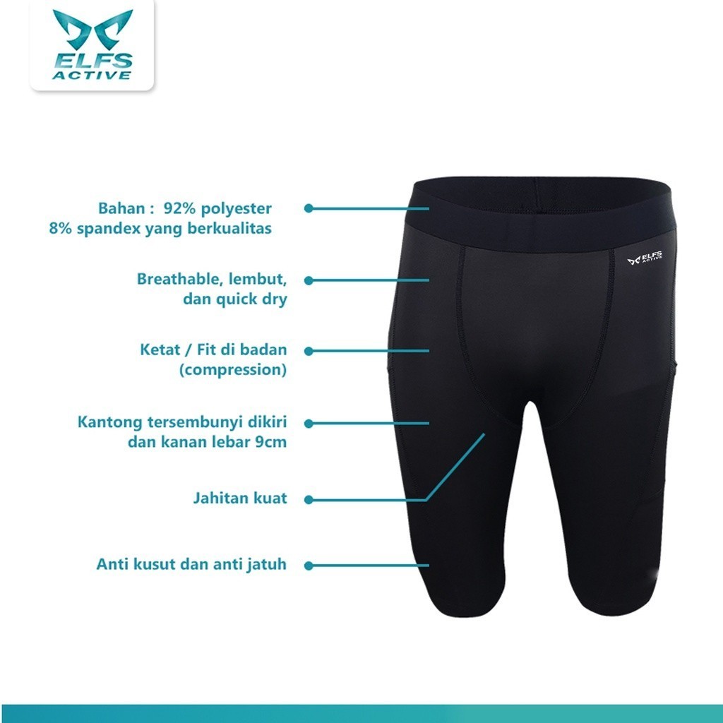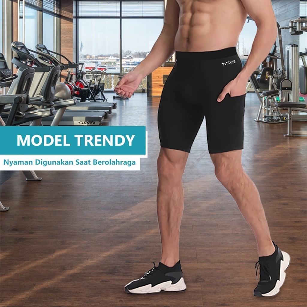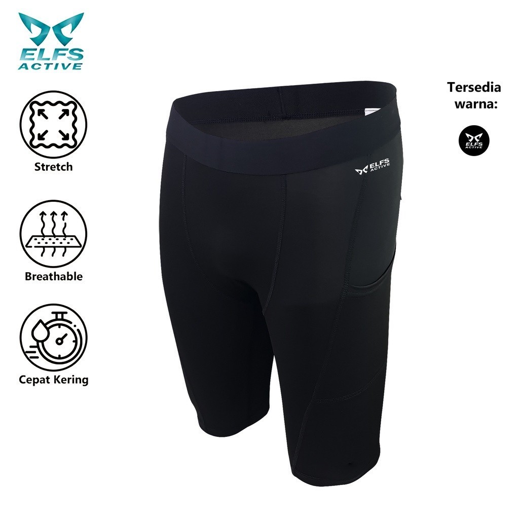 Elfs Active Compression Celana Pendek Pria Legging Gym Baselayer Short Pants Celana Olahraga