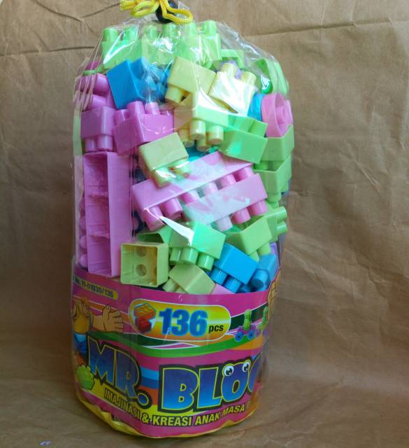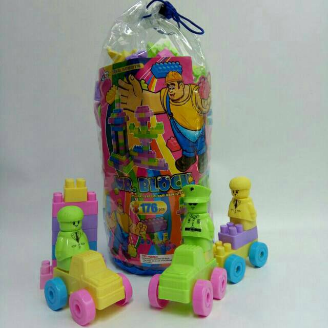 Mainan Anak Edukatif Blok Mr. Block Isi 176 / 136pcs Bongkar Pasang Edukasi Bricks Balok Brick