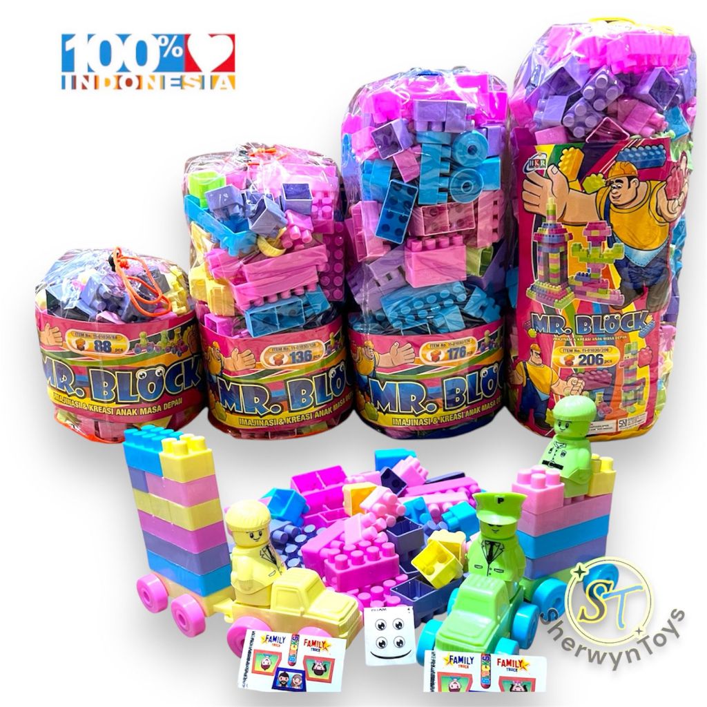 MR BLOCK BESAR Mainan Block Susun Edukasi Anak isi 88pc,136pc,176pc, 206pc