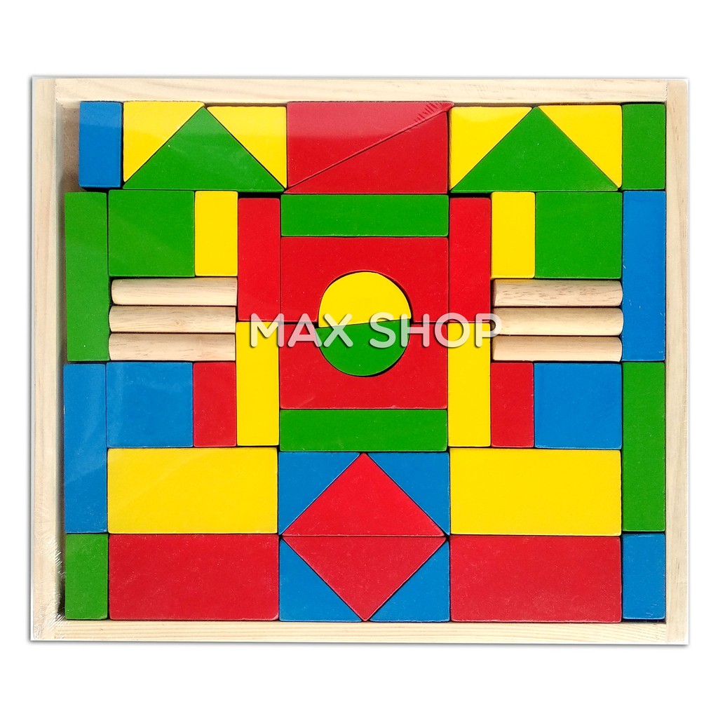 Mainan Edukasi Anak Balok Kayu isi 50pcs Wooden Block Susun Rumah dan Bangunan Kayu