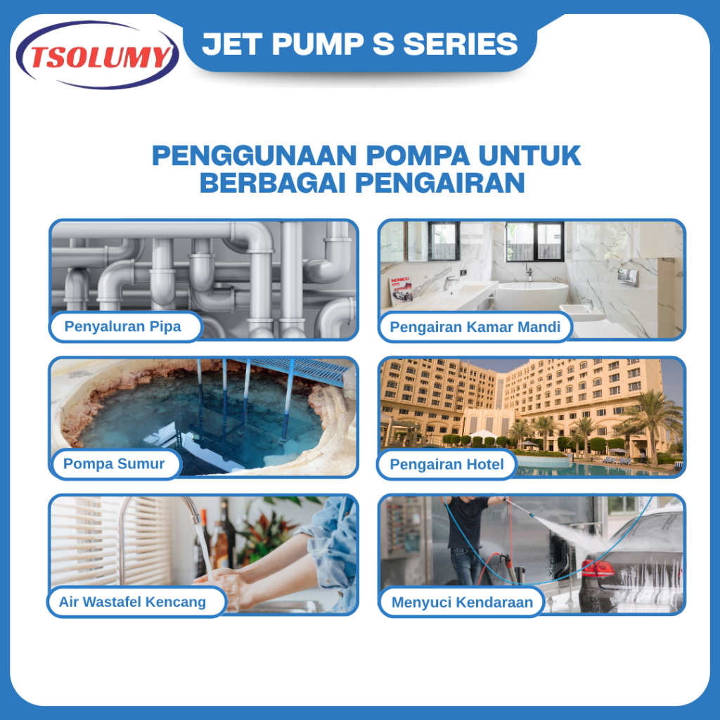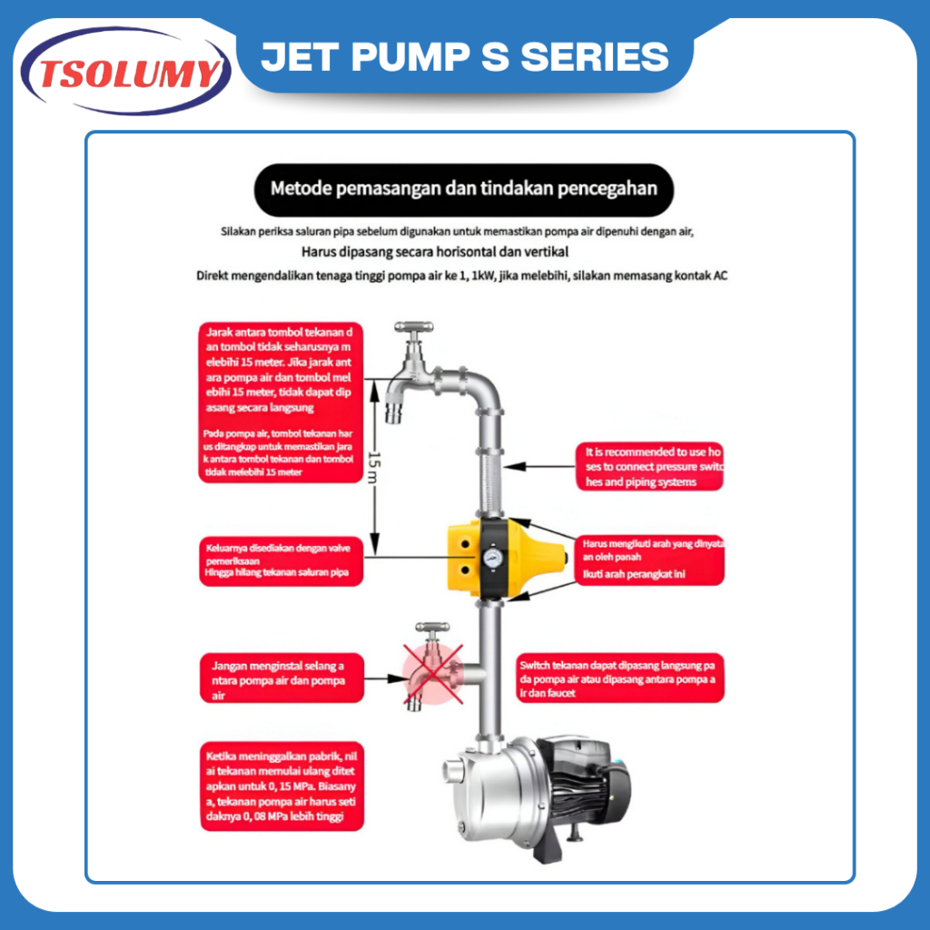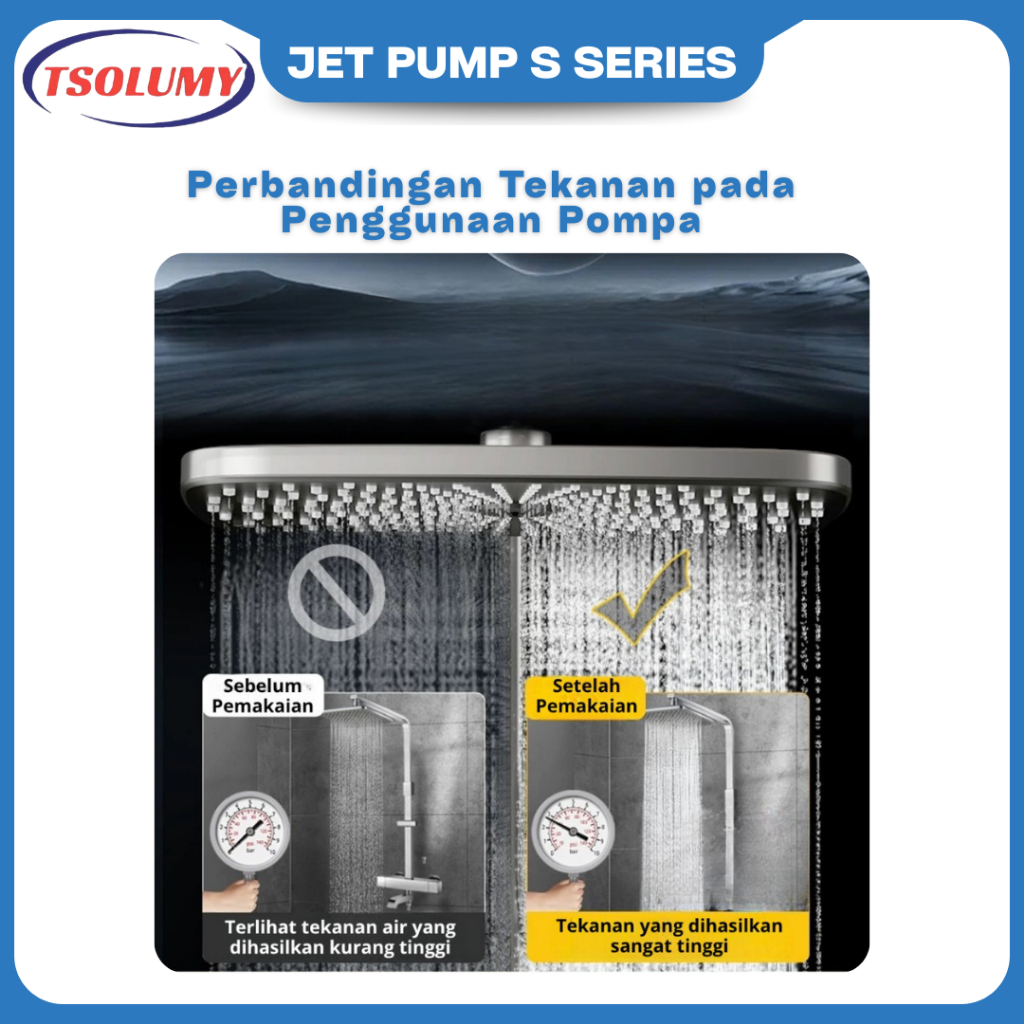 Tsolumy Pompa Air Sumur Jet Pump Stainless JETS-200 dan JETS-330 Mesin Semi Jetpump Air Rumah Tangga Anti Korosi