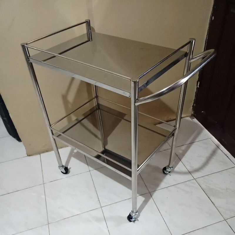 Troli Instrumen Medis 2 Rak Stainless Steel