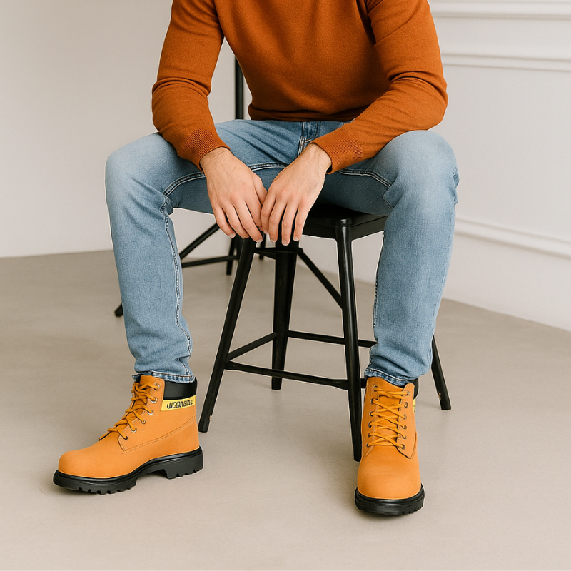 Sepatu Boot Pria Ujung Besi Safety Boots Kerja Lapangan Proyek Pabrik Kulit Premium Sefty Shoes