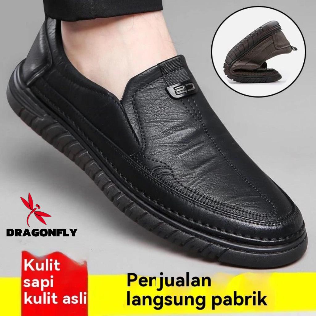 Sepatu kulit kasual slip-on kulit asli gaya baru untuk pria, dapat digunakan sehari-hari anti licin