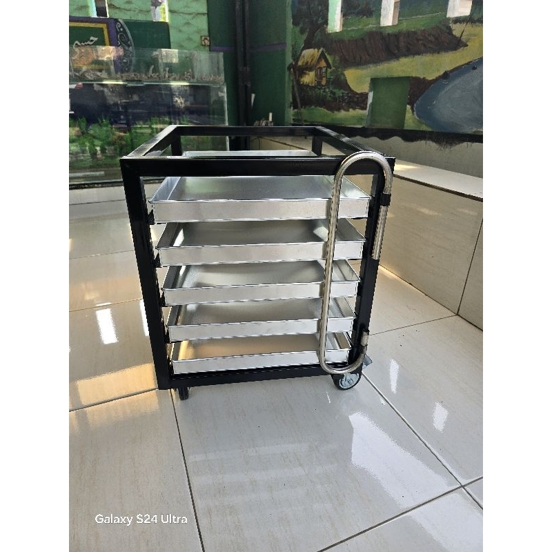 Troly rak loyang bakery 5 susun+cover fullset/rak penyimpanan loyang 60x40+cover/rak proffing/rak roti/rak kue