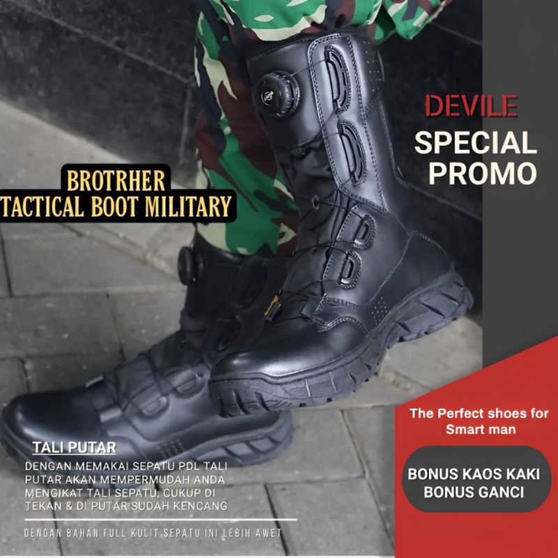 Sepatu Pdl Tactical Tni Polri sekurity Outdor Tali Putar Full Kulit Merk Brotrher Fitgo Devile Ujung besi Safety Sudah d