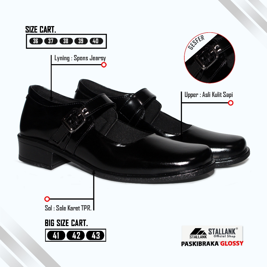 STALLANK || Sepatu Pantofel Paskibra Glossy Wanita Kulit Asli