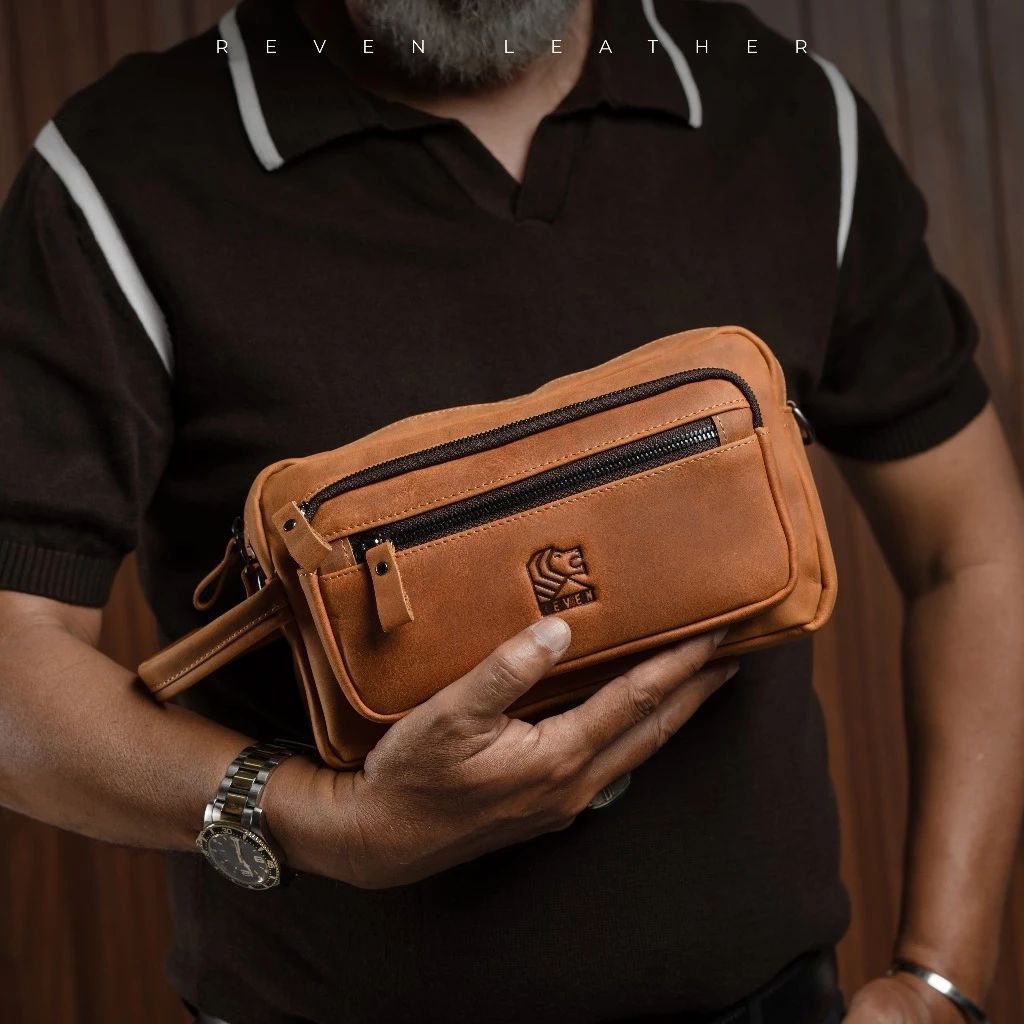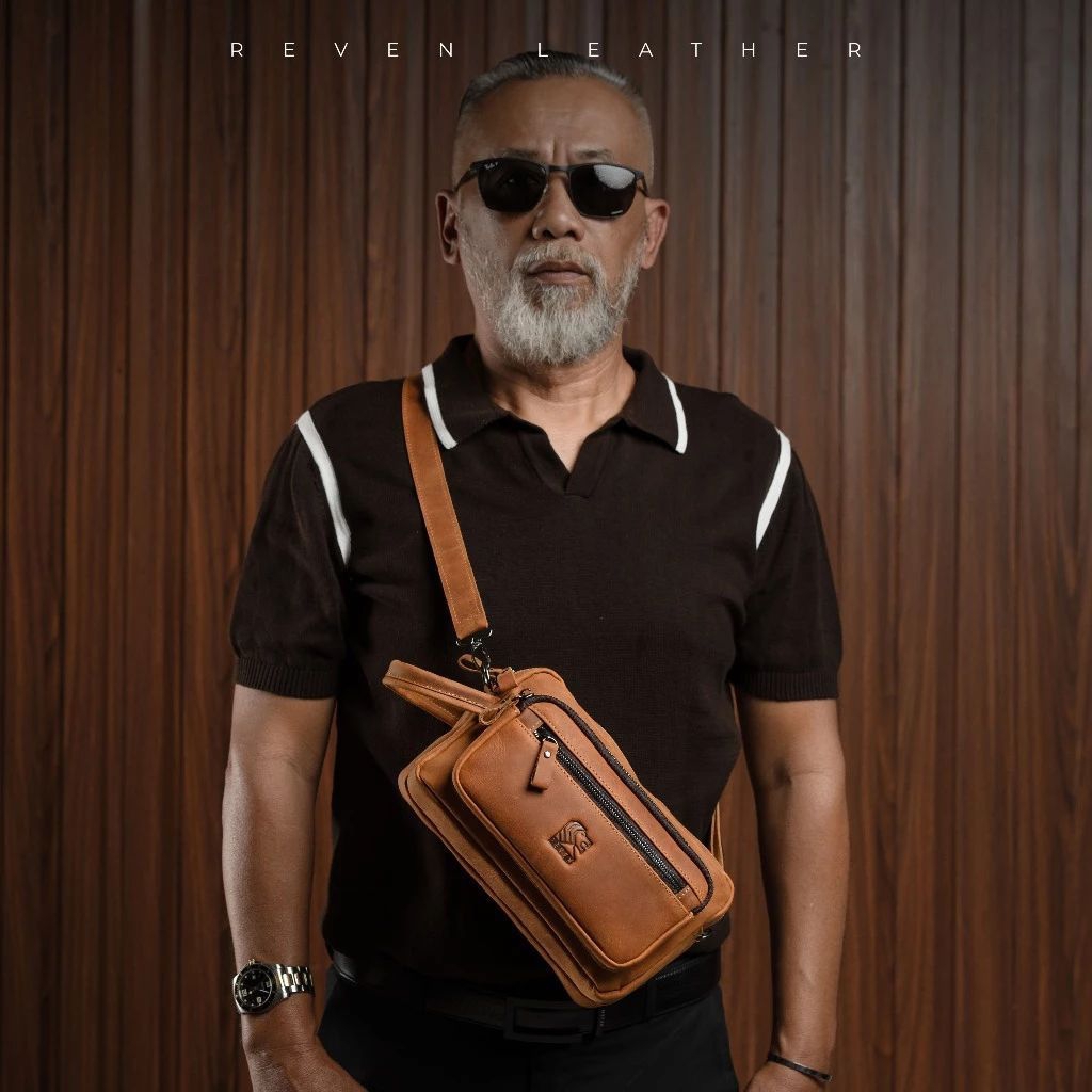 Reven Leather Nakula Pouch Bag - Tas Selempang Pria Slingbag Cowok Multifungsi Serbaguna Kulit Sapi Asli Crazy Horse Free Dompet Stnk