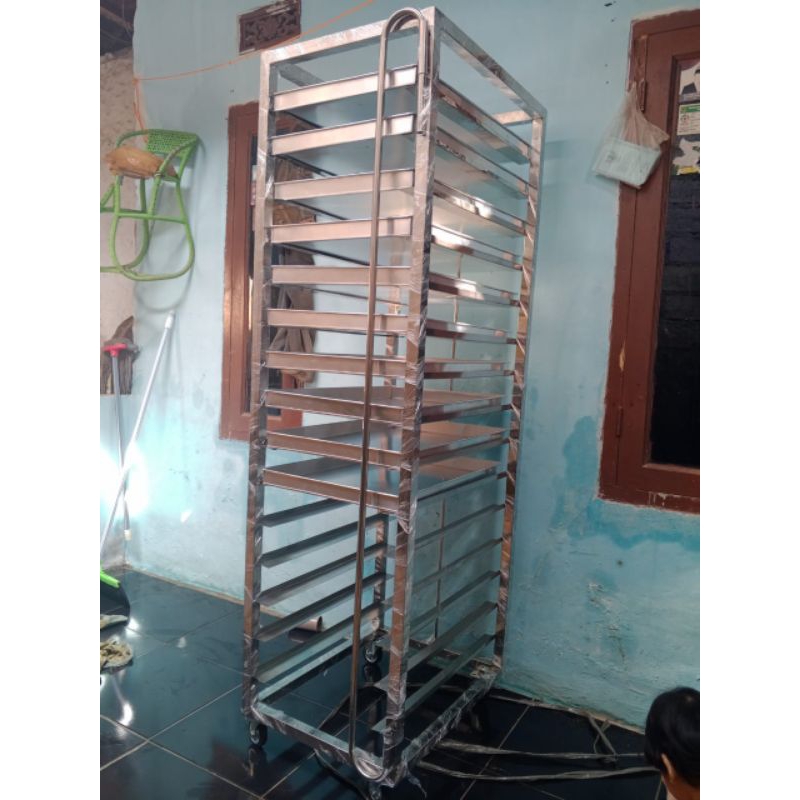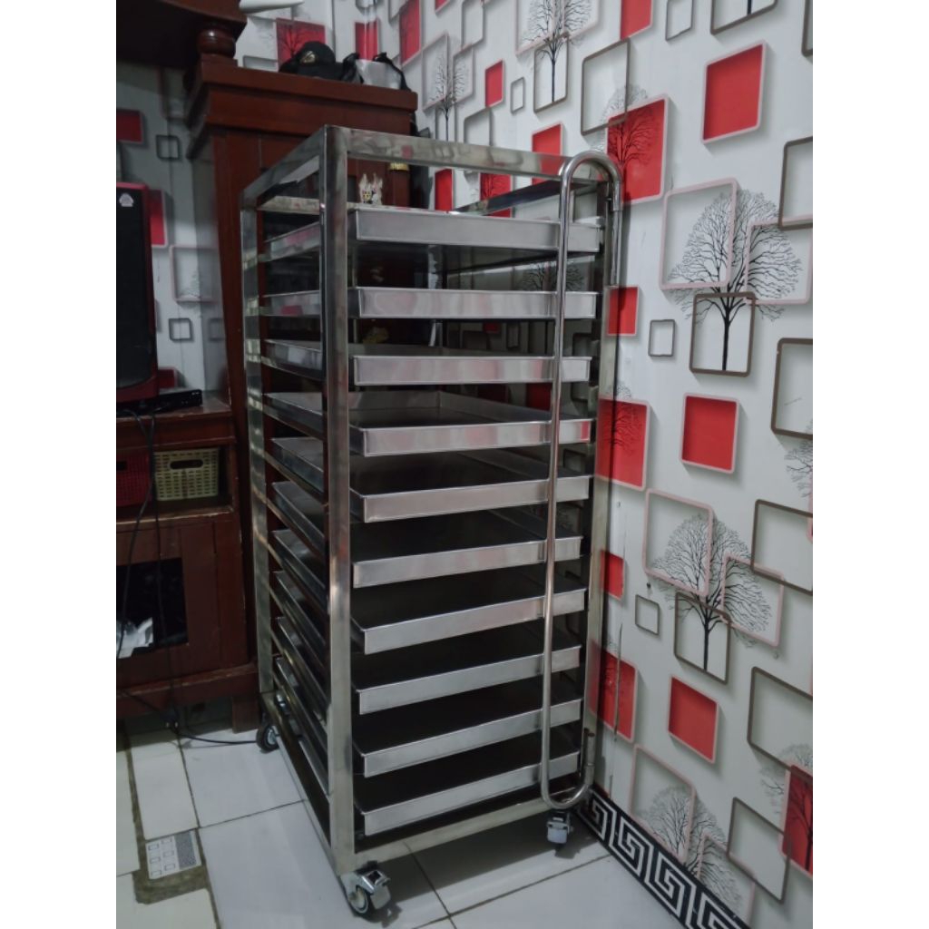 Rak Troli Bahan Stainless 15 Susun Loyang Ukuran 60x40 cm