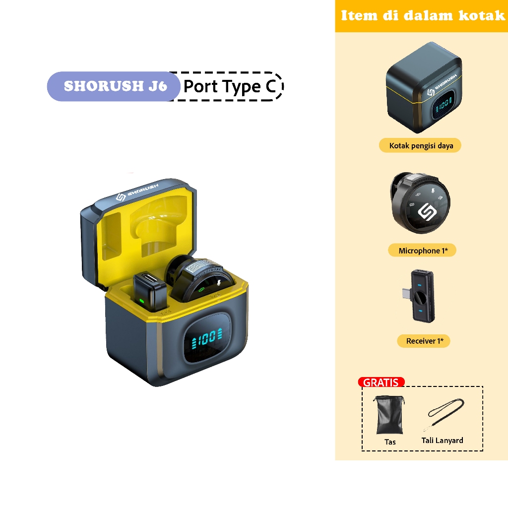 Shorush J6 Single Wireless Microphone Magnetic Clip On Mic Lavalier Microphone Hp Plug & Play Nirkabel Mikrofon Konten K