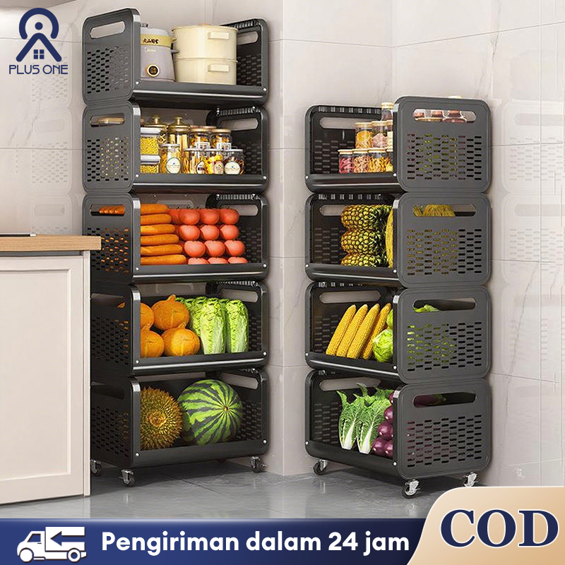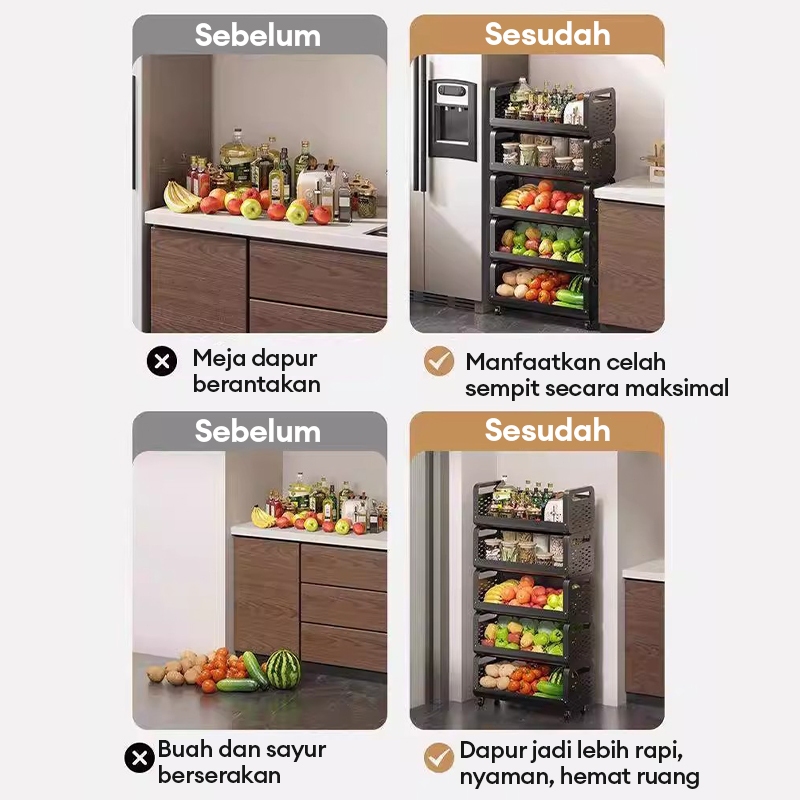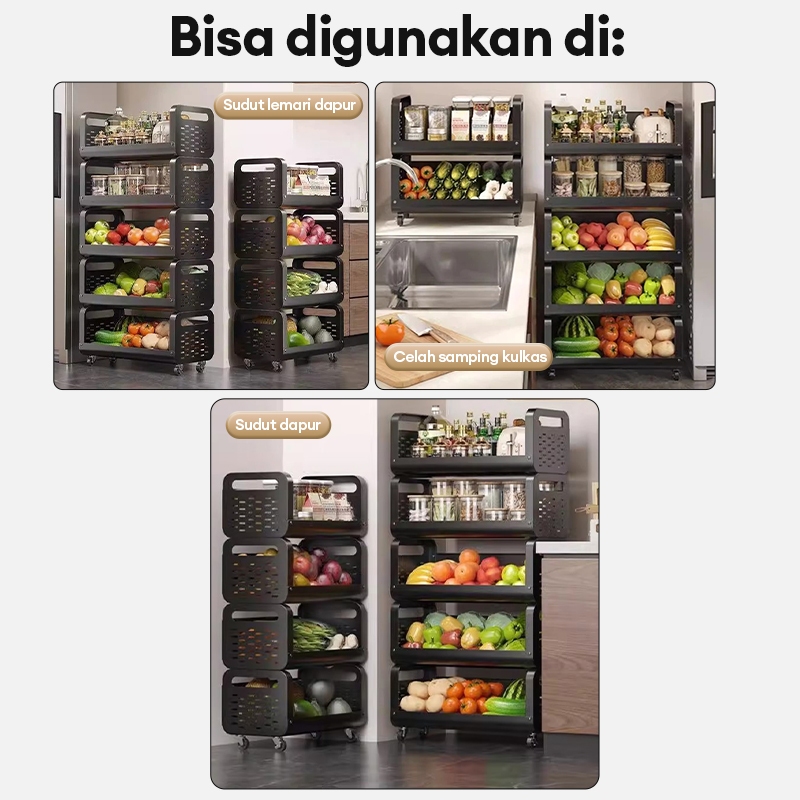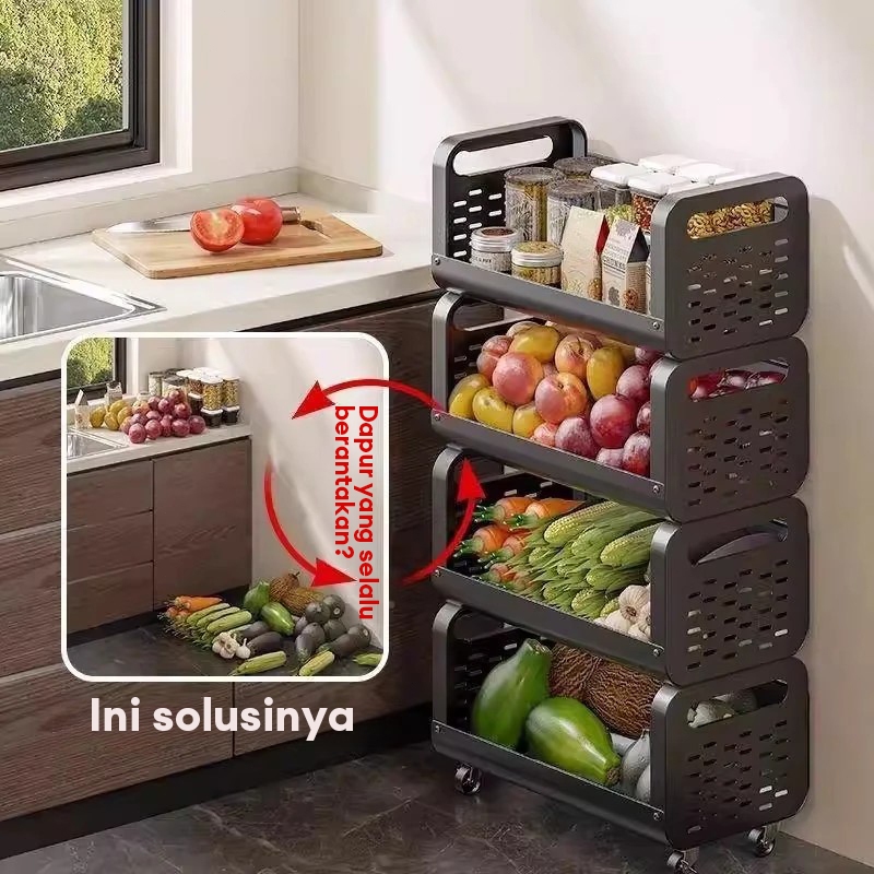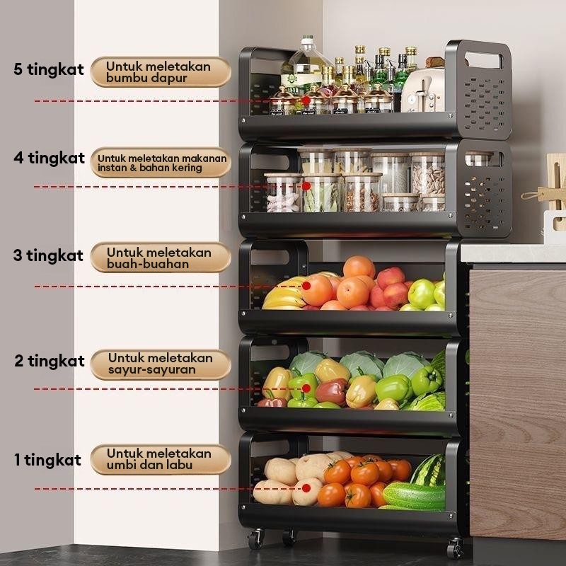 Rak Dapur Troli Dengan Roda Rak Penyimpanan Sayuran Multi-lapis Rak Serbaguna Aesthetic Dengan Roda Rak Sayuran Dapur Be