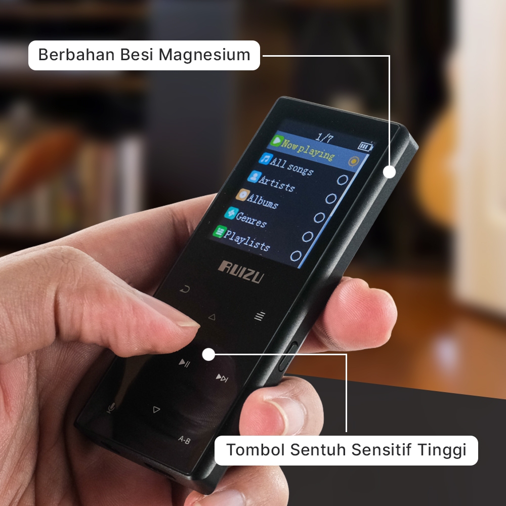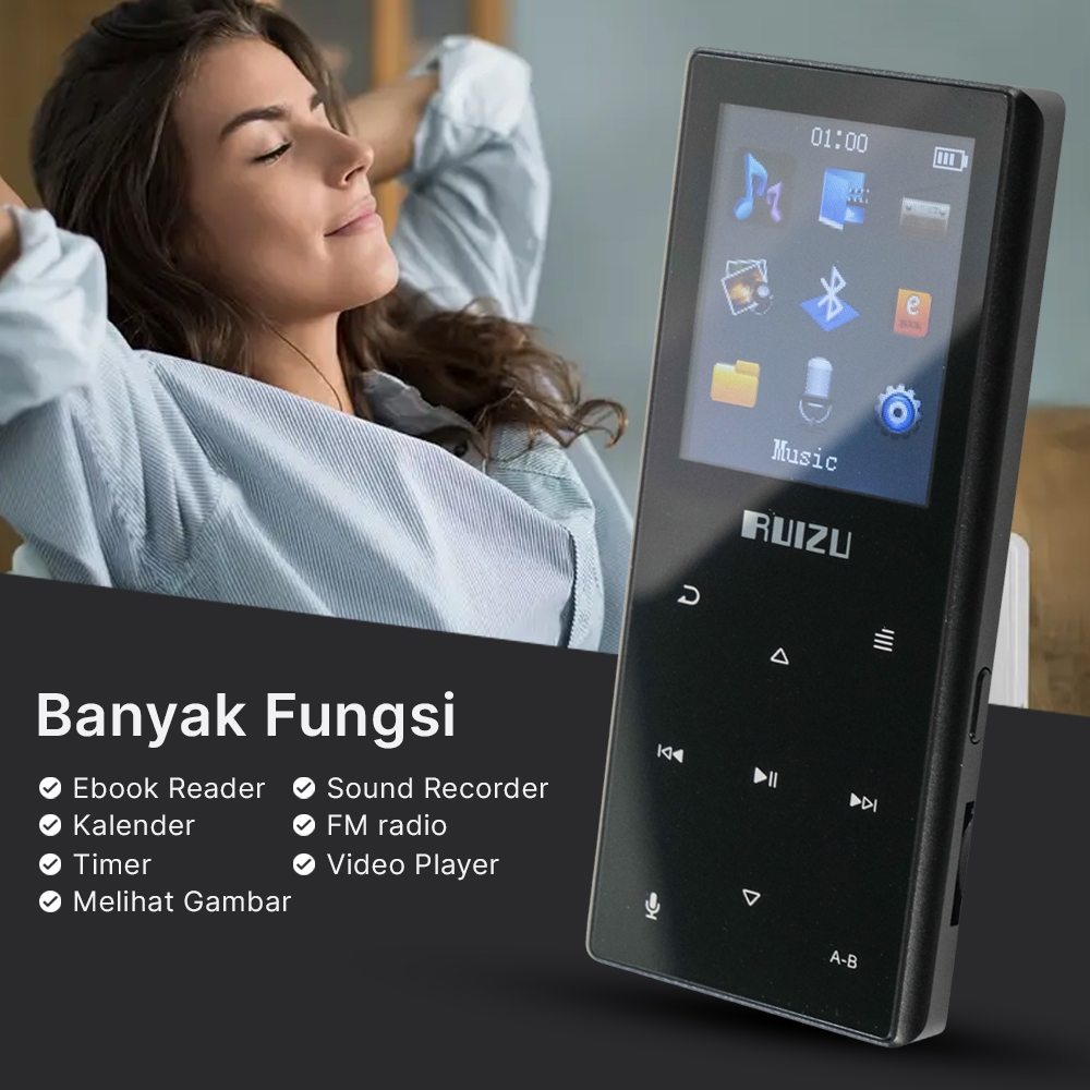 Ruizu D29 HiFi DAP MP3 Player- Bluetooth - 8GB - Radio FM - Voice Recorder - Touch Button - Pemutar MP3 MP4