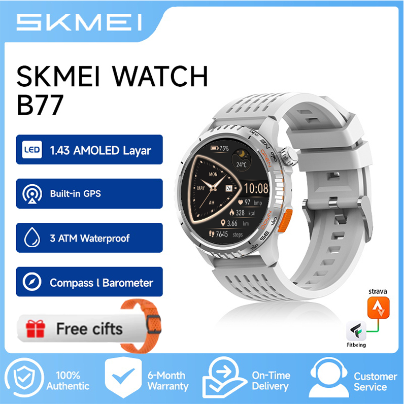 jam tangan pria skmei original Smartwatch B77 Built-in GPS 3 ATM jam tangan cowok tahan air Waterproof 1.43AMOLED Screen