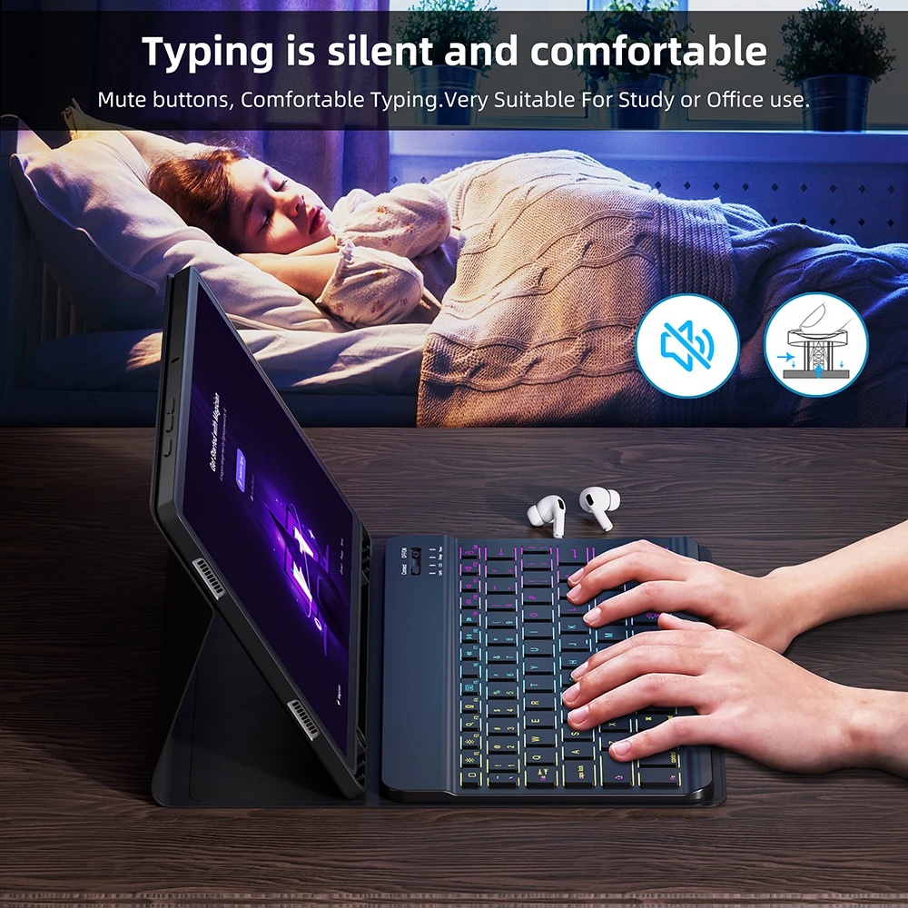 Goojodoq Case For Samsung Galaxy Tab A8 A9+ S7/8/9 Case Keyboard For Samsung Tab S6 Lite Case Rainbow Keyboard Mouse For Samsung Tab S7 S8 S9 Case