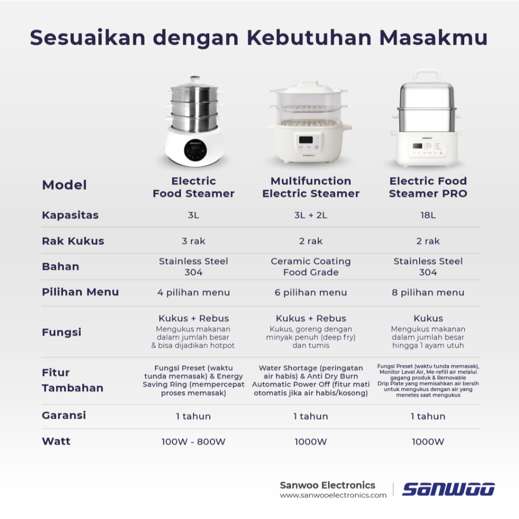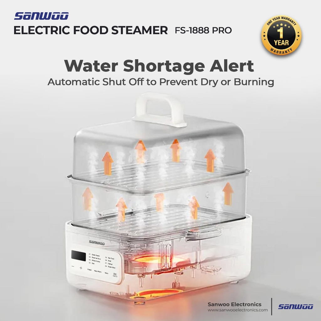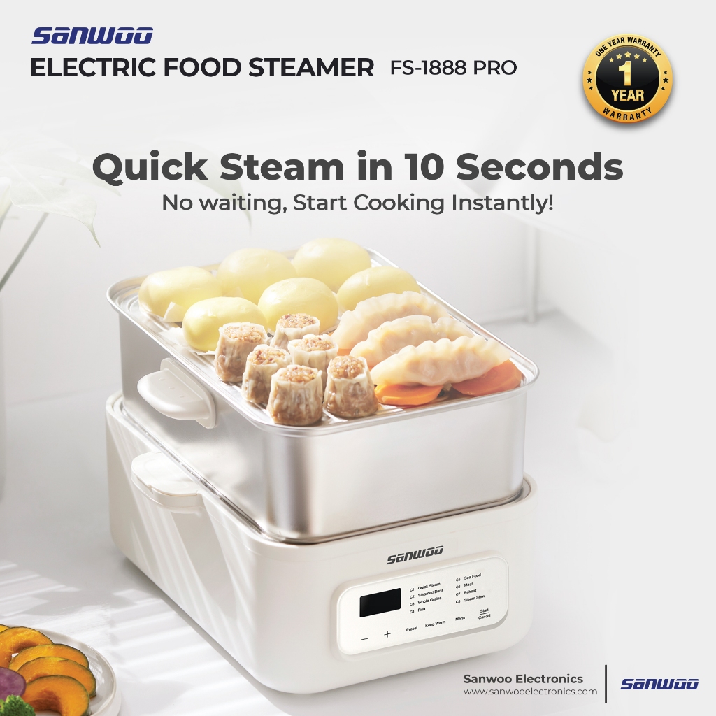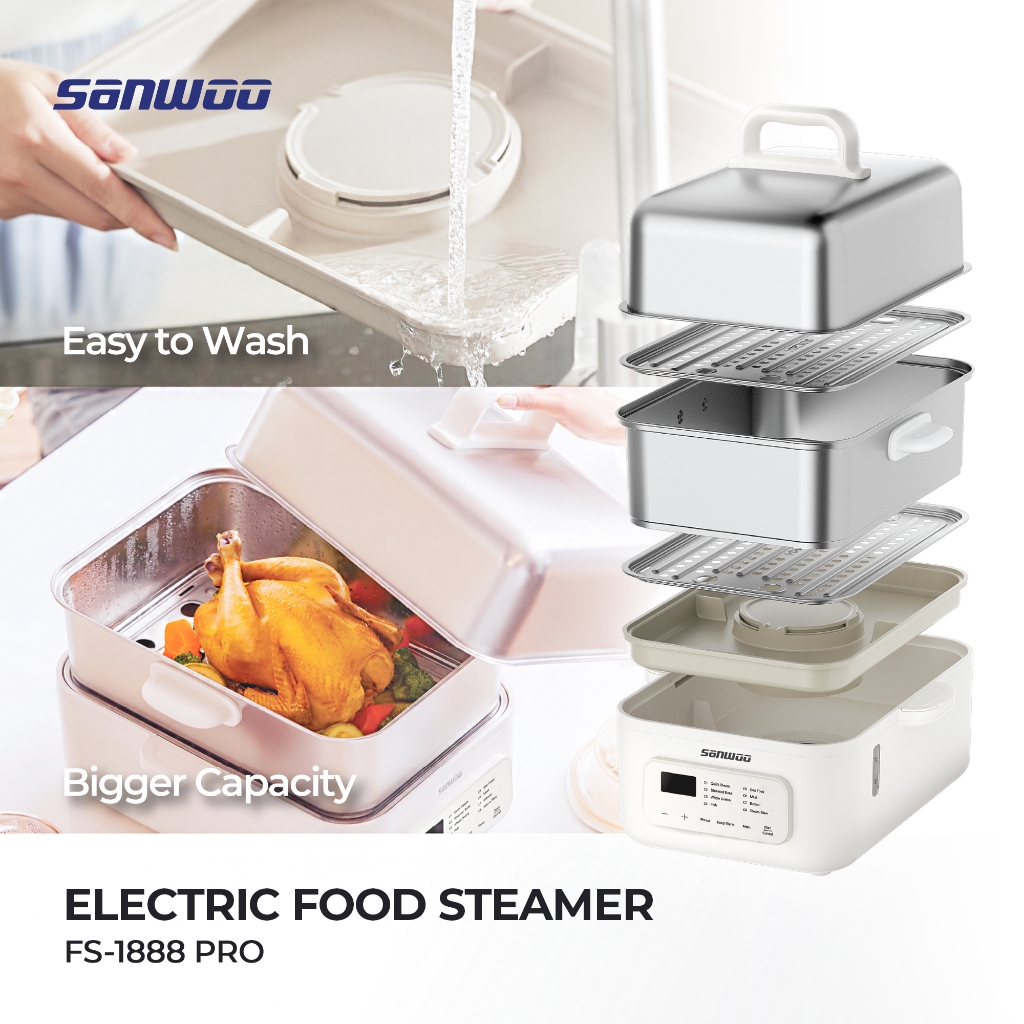 Sanwoo Electric Food Steamer PRO 18 Liter / Food Steamer Stainless / Pengukus Makanan / Kukusan Stainless