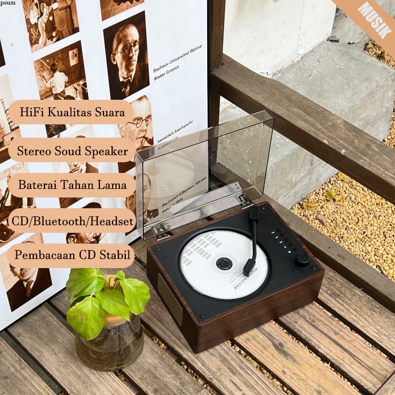 Portable Bluetooth CD Player Pemuter CD Retro Stereo Sound USB Drive Input/Output Aux