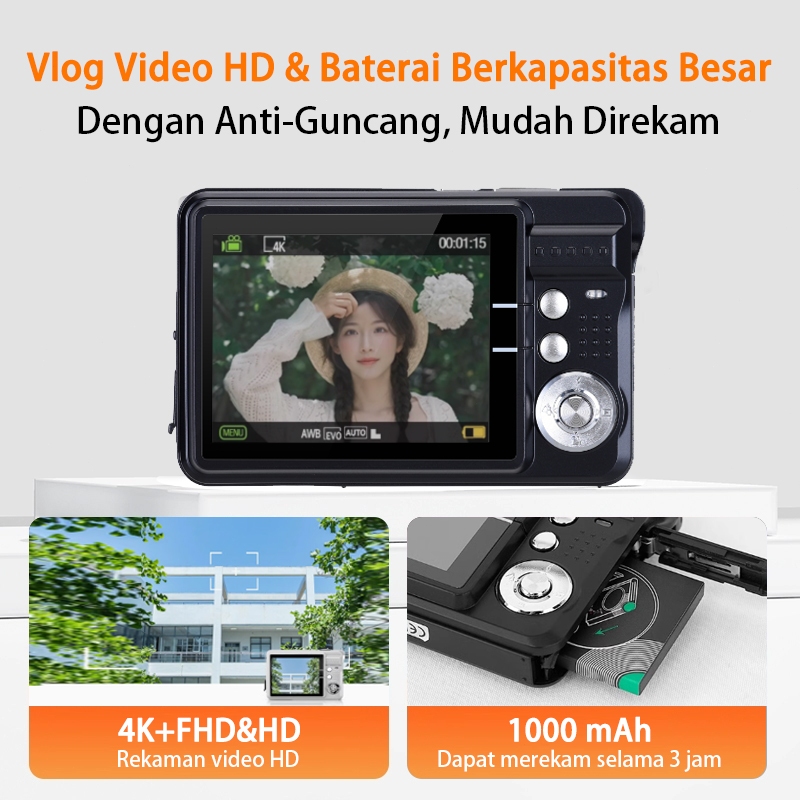Akona Digicam 48MP Kamera Digital Pocket Layar LCD 2,7 Inci Digital Camera Mini Pembesaran 8X Anti-guncangan Yang Cerdas