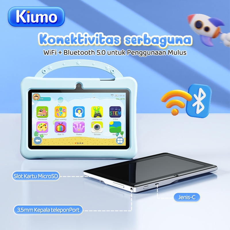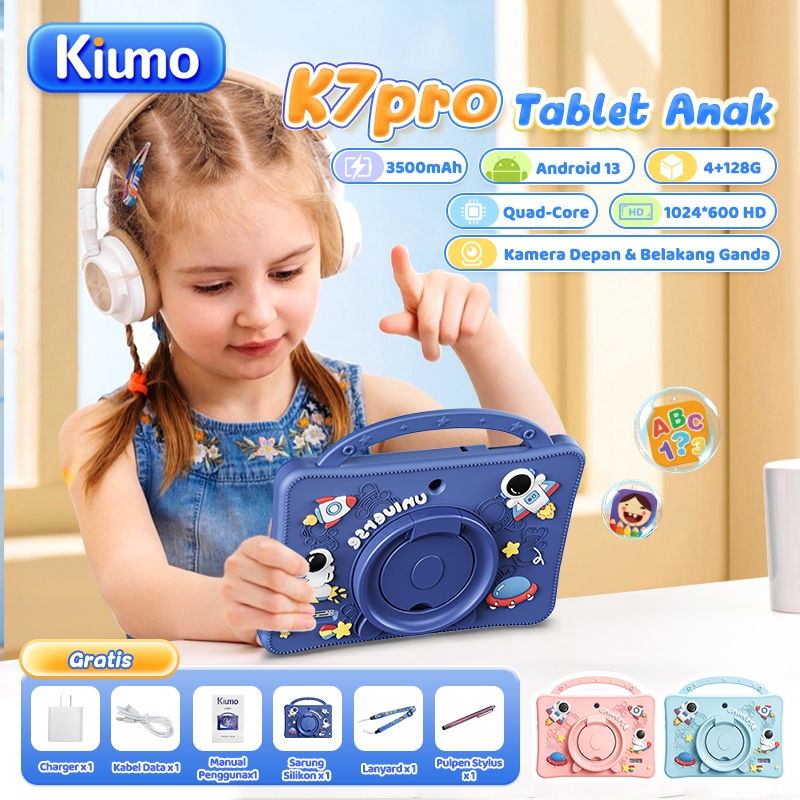Kiumo K7pro 4+128GB Tablet Anak Android Tablet Edukasi Anak 7-inch / Android 13 / 3500mAh with Lanyard & Handle Parental Control System