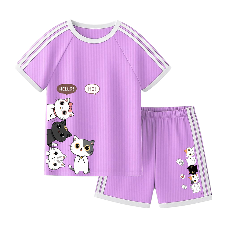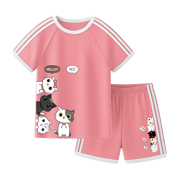 Setelan Baju Anak Lengan Pendek Printing CUTE CAT Setelan Anak Perempuan Umur 1-10 Tahun
