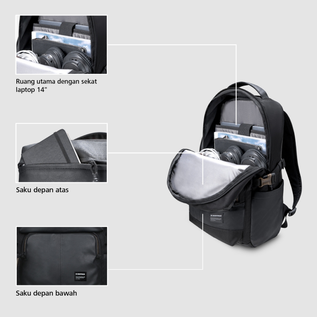 Bodypack Cynics 2.0 Laptop Backpack 14 Inch Tas Ransel Kerja Kuliah Sekolah Classic 21 L - Hitam