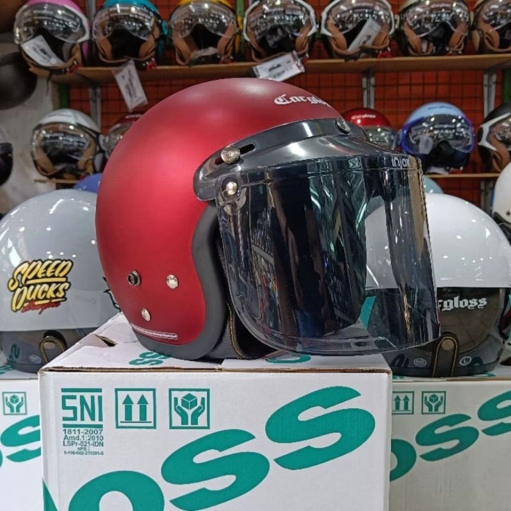 Helm Cargloss Dewasa SNI PREMIUM + Kaca DATAR INJAK / helm / helm cargloss