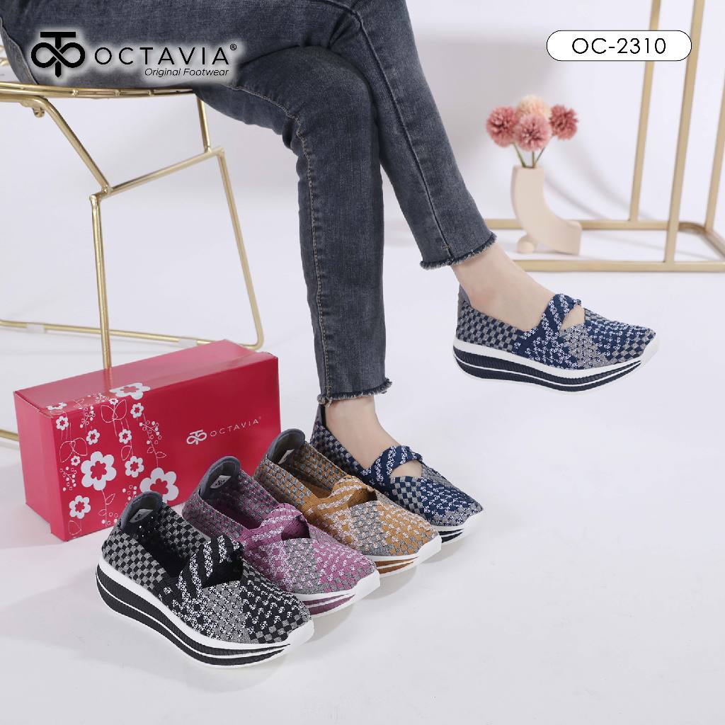 [ORIGINAL] OCTAVIA Sepatu Slip On Rajut Knit Wedges Wanita #OC-2310
