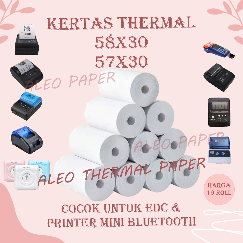 10 ROLL KERTAS STRUK KASIR THERMAL PAPER ROLL 58X30 57X30 TERMAL EDC THERMAL PRINTER MINI BLUETOOTH 58MM CETAK HITAM