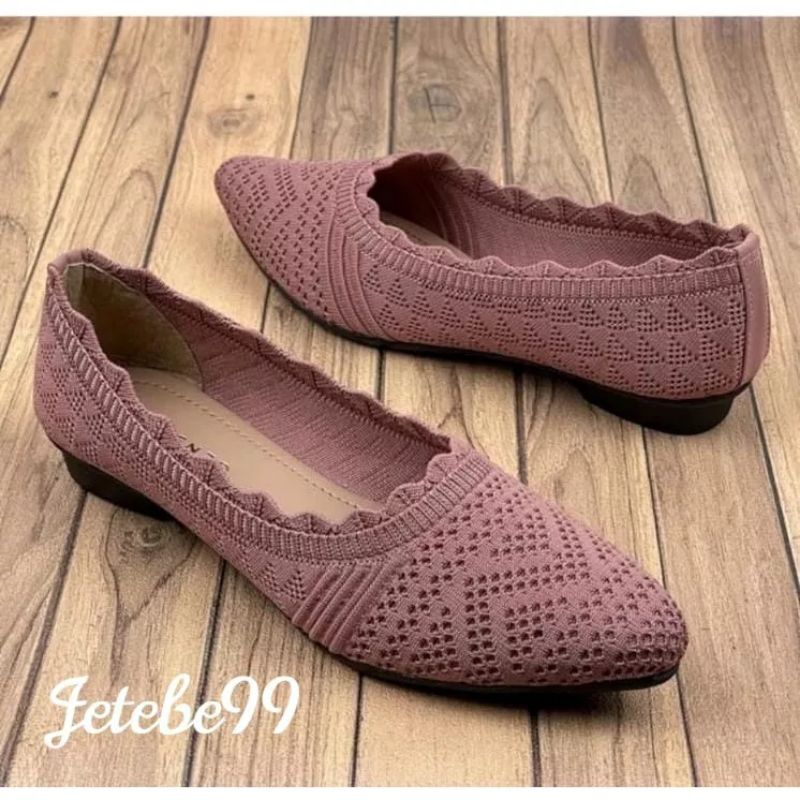 NAWARSHOES - Sepatu Wanita Flat Shoes Rajut Import