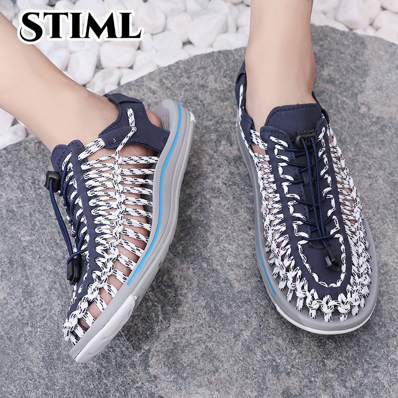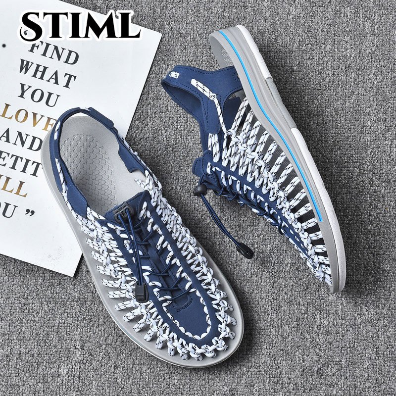STIML 2025 Sepatu Sendal Tali Rajut Pria White Navy Hiking Trekking Handmade Olahraga Keren Sandal