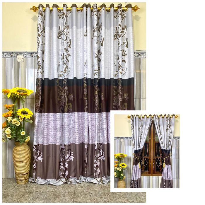 Paket Hemat Gorden Jendela Dan Pintu Kamar Minimalis Smokring 12 Lubang - Amora Hijau, L135 X T220 (3Pcs)