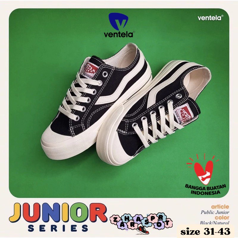 [JUNIOR] Ventela Public Low Black Natural / Sepatu Sekolah Anak Laki-Laki Perempuan SD / Sepatu Sneakers Anak Laki Laki