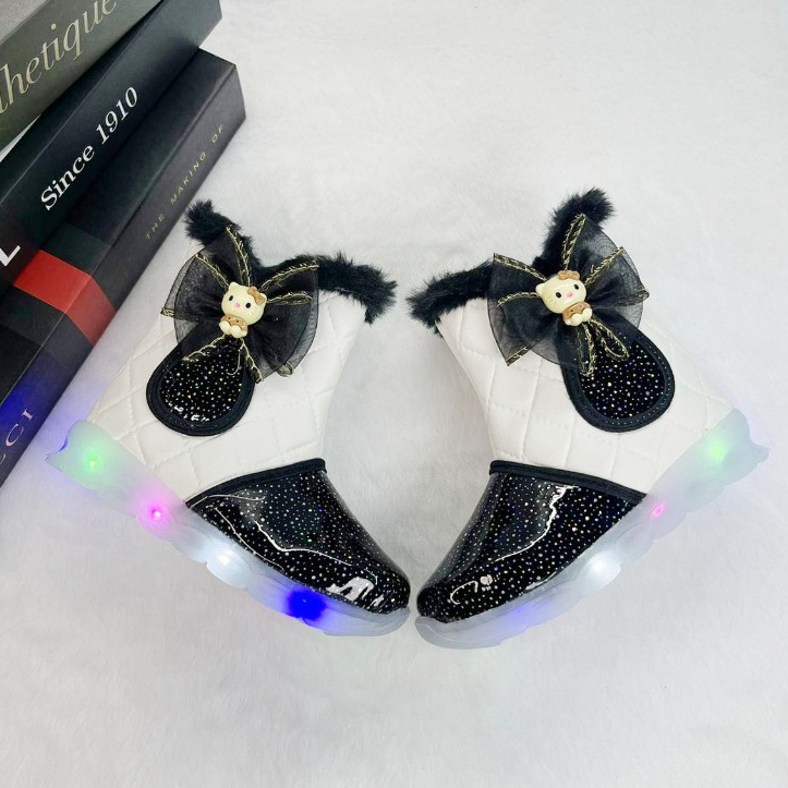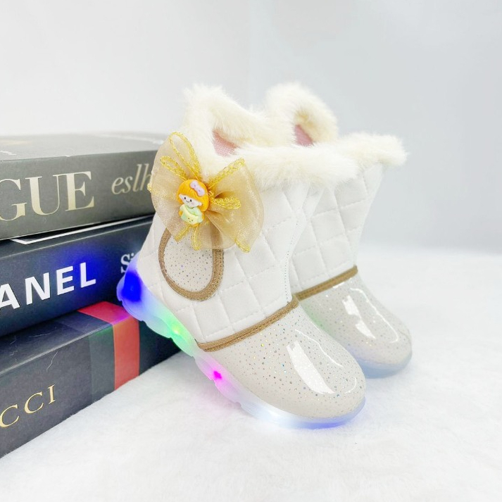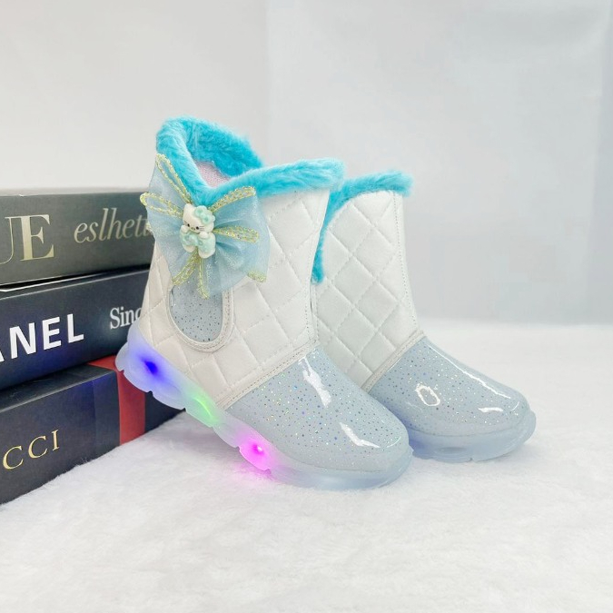 Sepatu Boots Anak Perempuan LED Motif Pita Boneka / Sepatu Anak MENYALA IBLED03
