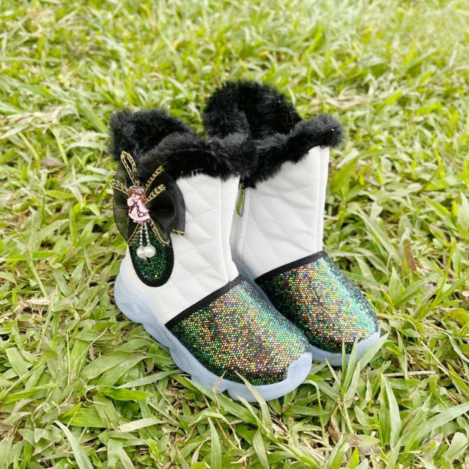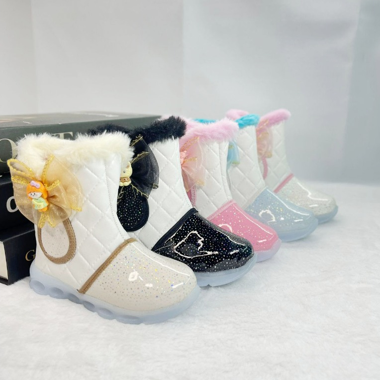 Sepatu Boots Anak Perempuan Motif Bulu Pita Karakter Lucu Model Terbaru 2025 IB03