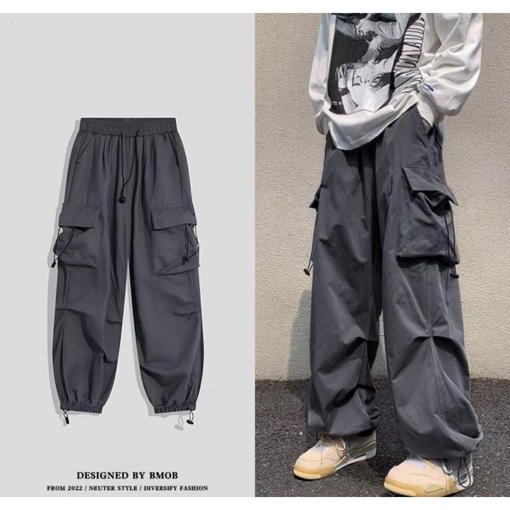 Celana Cargo Panjang Tali Serut Pria Uni Highwaist Premium-Bawahan Pria-Celana Gunung